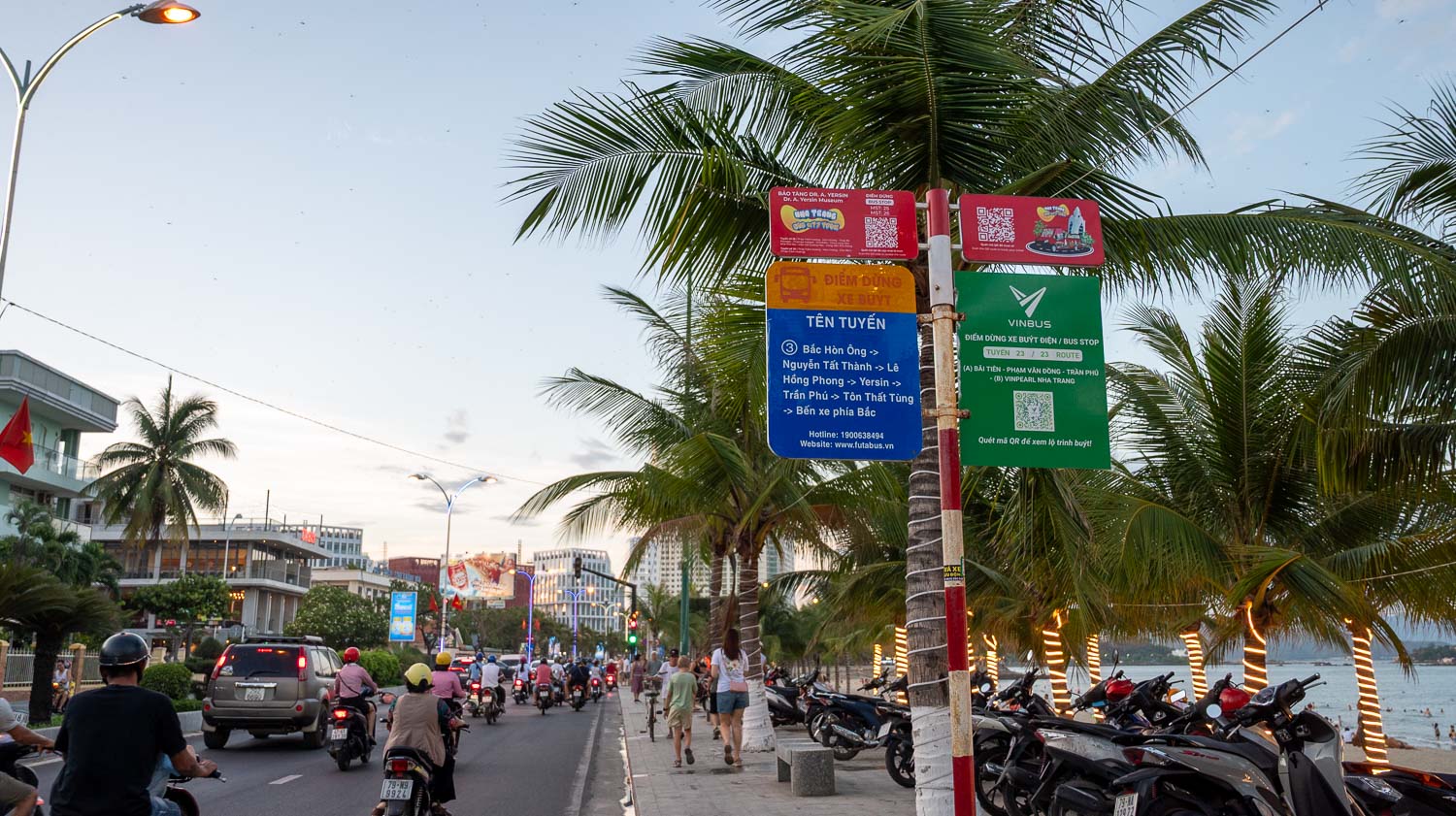 芽莊的藍天白雲及蔚藍海岸總讓人流連忘返,而往返機場至市區之間是閃耀的海灣與椰影搖曳的公路風景,雖然距離略長,但在交通方式的選擇上算是蠻多元的,而這段金蘭國際機場(Cam Ranh International Airport)到市區之間的交通方式,正是這趟旅程中輕鬆而順暢的開頭及收尾。,是許多旅人離開越南中南海岸前的最後一眼美景。
