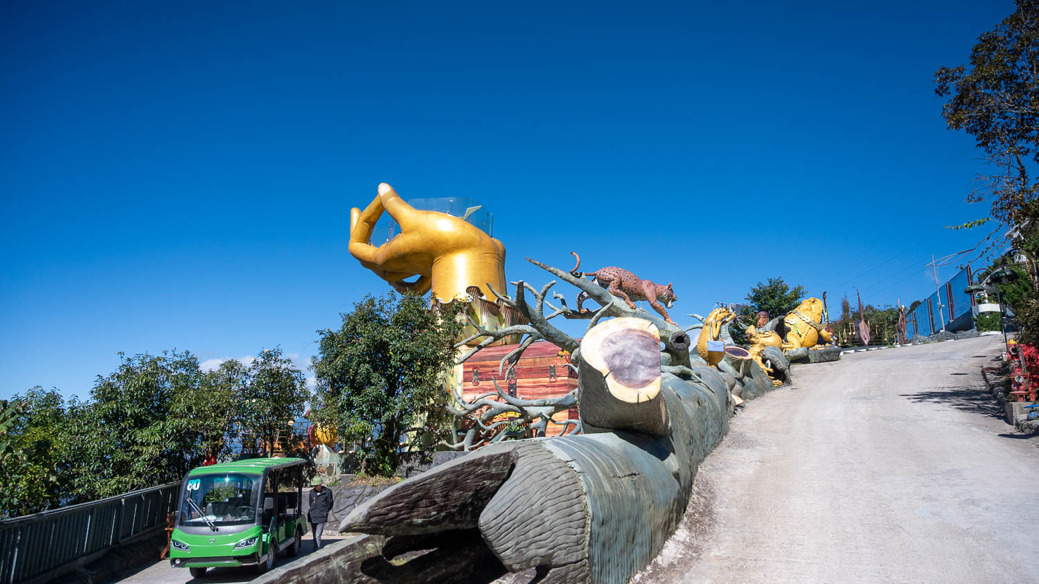 往上走的話有個天堂之門及其它設施可拍照,包含在路邊就能看到很大的金色佛像。