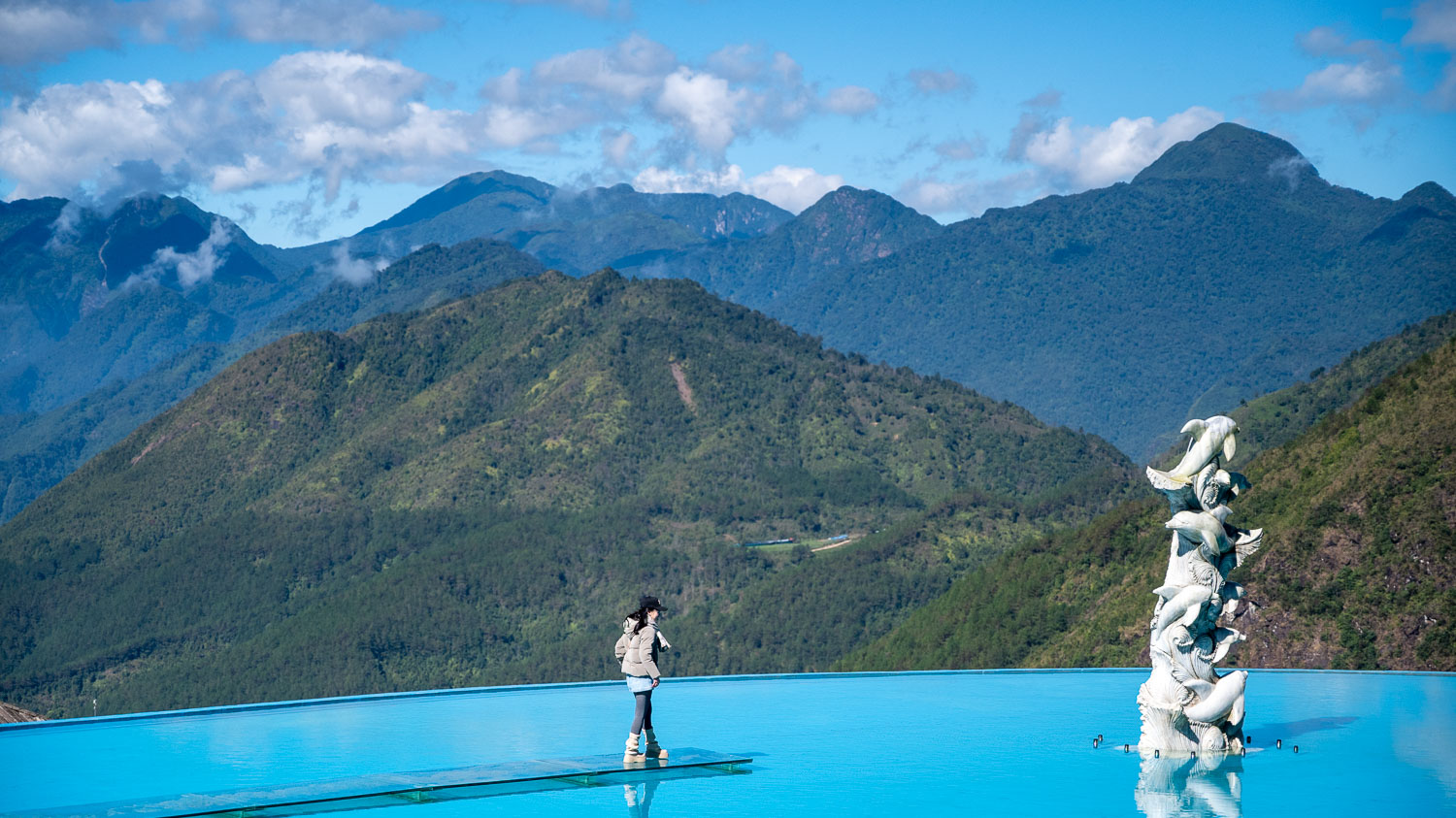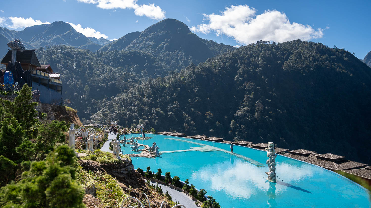 下車地點是個泳池,這裡也是最多人拍照的地方,因為這裡的風景其實和 Rong May Glass Bridge 差不多,高度上雖然有差,但視覺上沒太大差異。